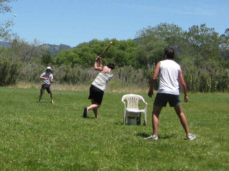 Things got even better on Sunday with the arrival of Ronald from South Africa. With so many ex-colonies represented a game of cricket spontaneously broke out (lucky that I'd brought the cricket bat then!) I felt that my fielding - i.e. running around in the long grass chasing the ball - was my standout skill. Hannah and Fiona watched from the shade of the trees, drinking Pimms and clapping politely.