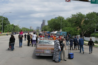 And the city turns out to watch! I think drinking in public is usually illegal around here, but families line the streets with picnic chairs and coolers full of beer while the police escort looks on. Add in the honking horns and natural exhibitionism of people who do these things to their vehicles, and it was a full-throttle party on the blacktop.